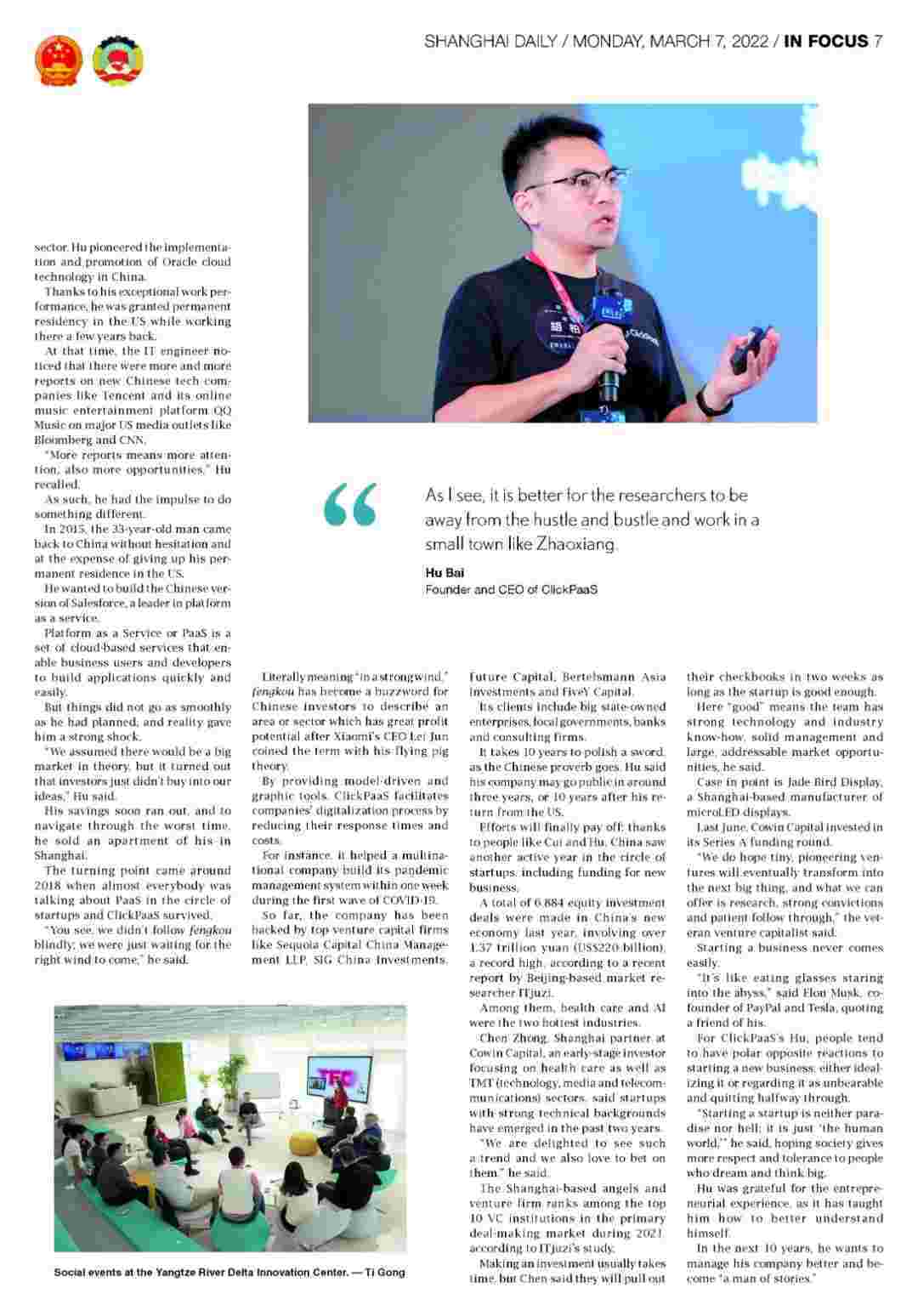【创业故事】《上海日报》专访沃钱包创始人、、、、CEO胡柏,,探究其创业背后的故事