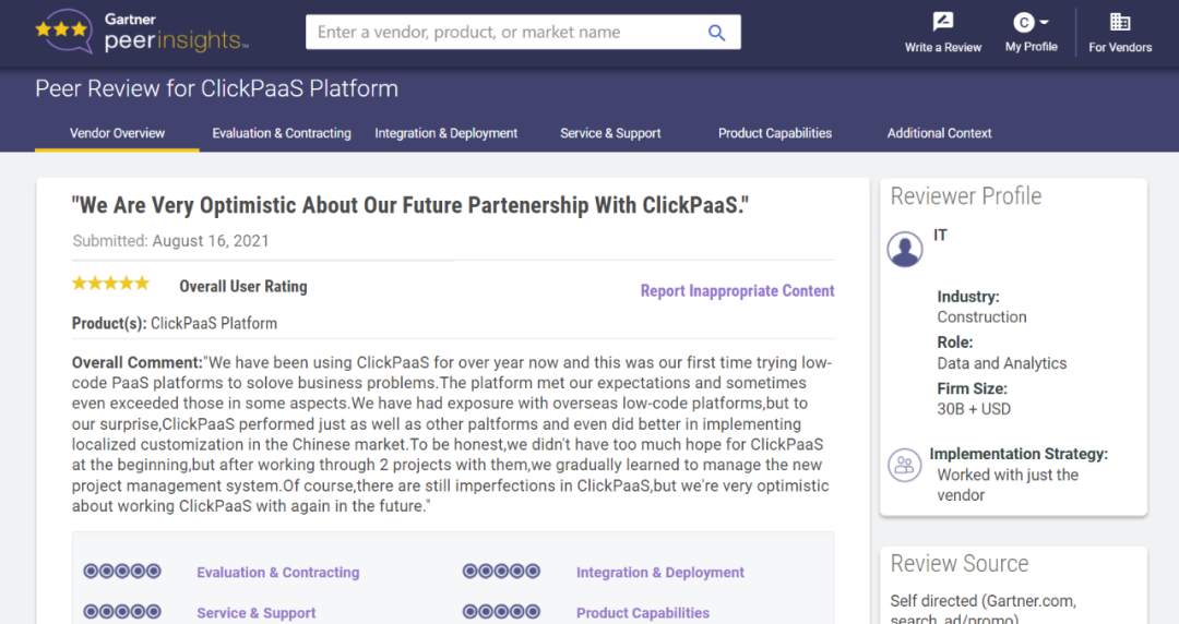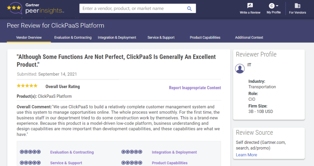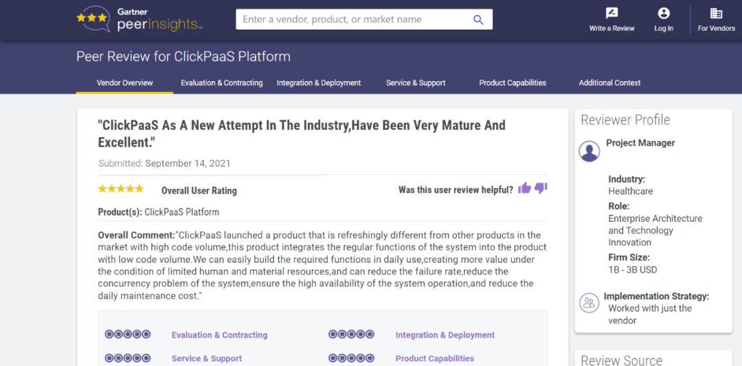 Tips::【Peer Insights】——用户对企业IT产品和服务发布真实评价的平台。。。目前已有355个市场,,,,255,000条经过验证的评价。。。。每一条评价Gartner会针对参评企业营收规模及参评人员信息做验证、、、评价内容做多维核实。。。